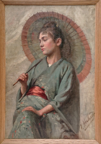 Emma Herland (Cherbourg 1855 - Quimper 1947) Jeune femme en kimono Huile sur toile, 55 x 38 cm Peinture realisee lors de son sejour a l'Academie Julian, Paris, 1887-88